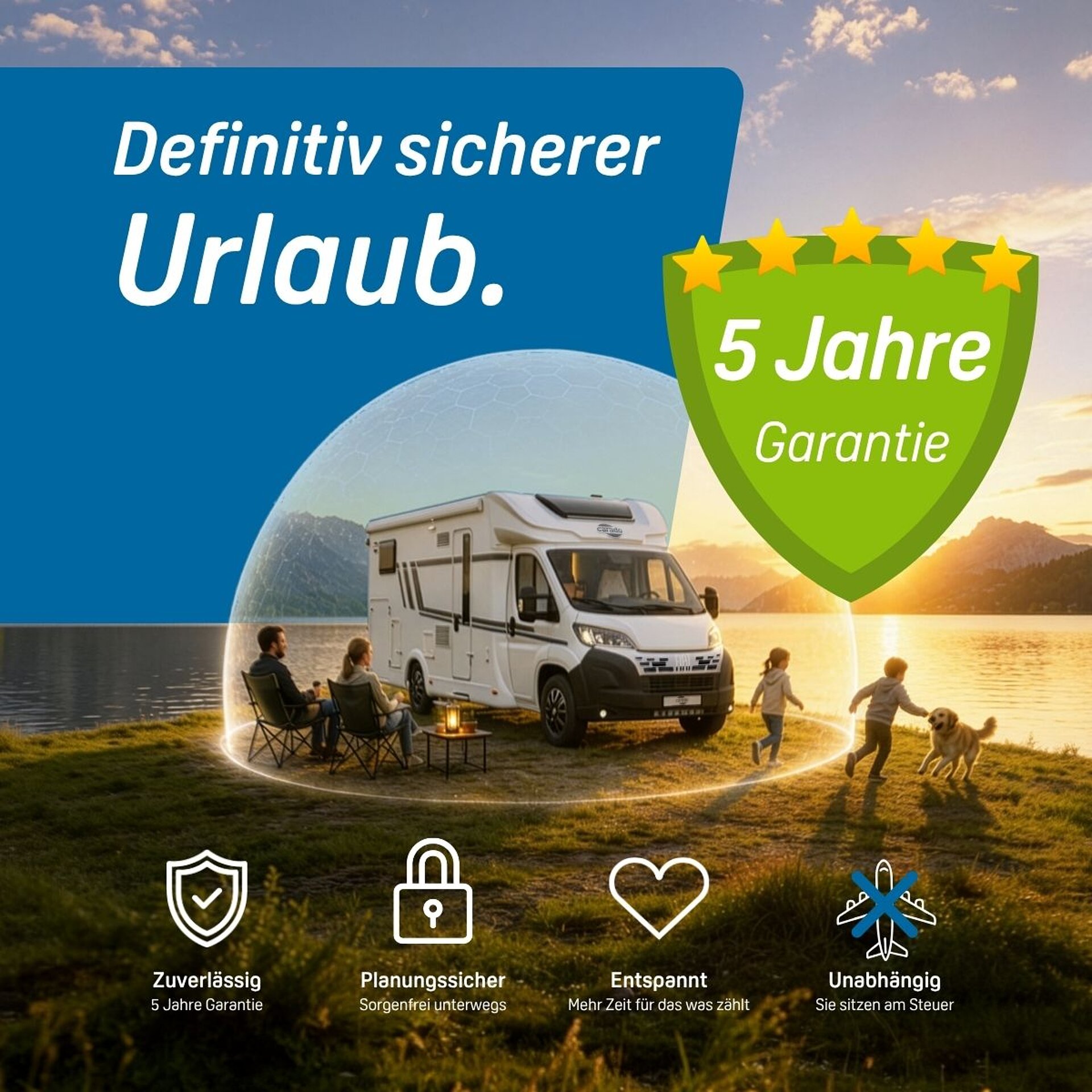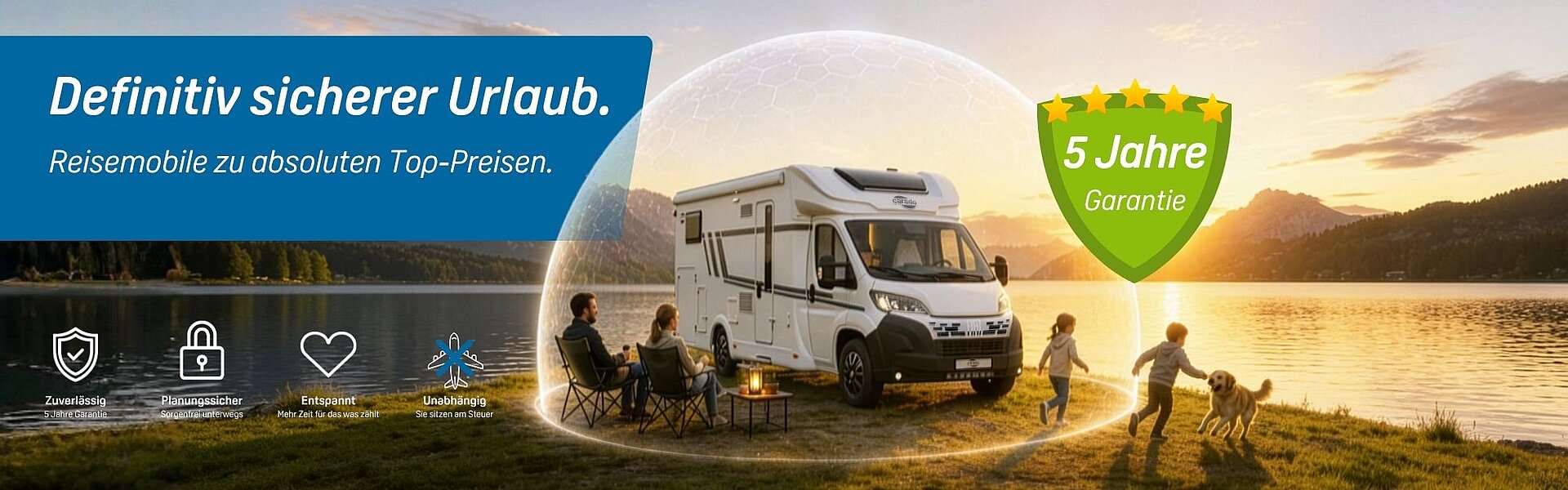Für Sicherheit auf Jahre erhalten Sie beim Kauf eines Carado Neufahrzeugs vom 01.05. bis zum 17.05.2026 fünf Jahre Garantie. Damit ist der Urlaub für die nächsten Jahre gesichert – und Sie können sich so richtig entspannen!