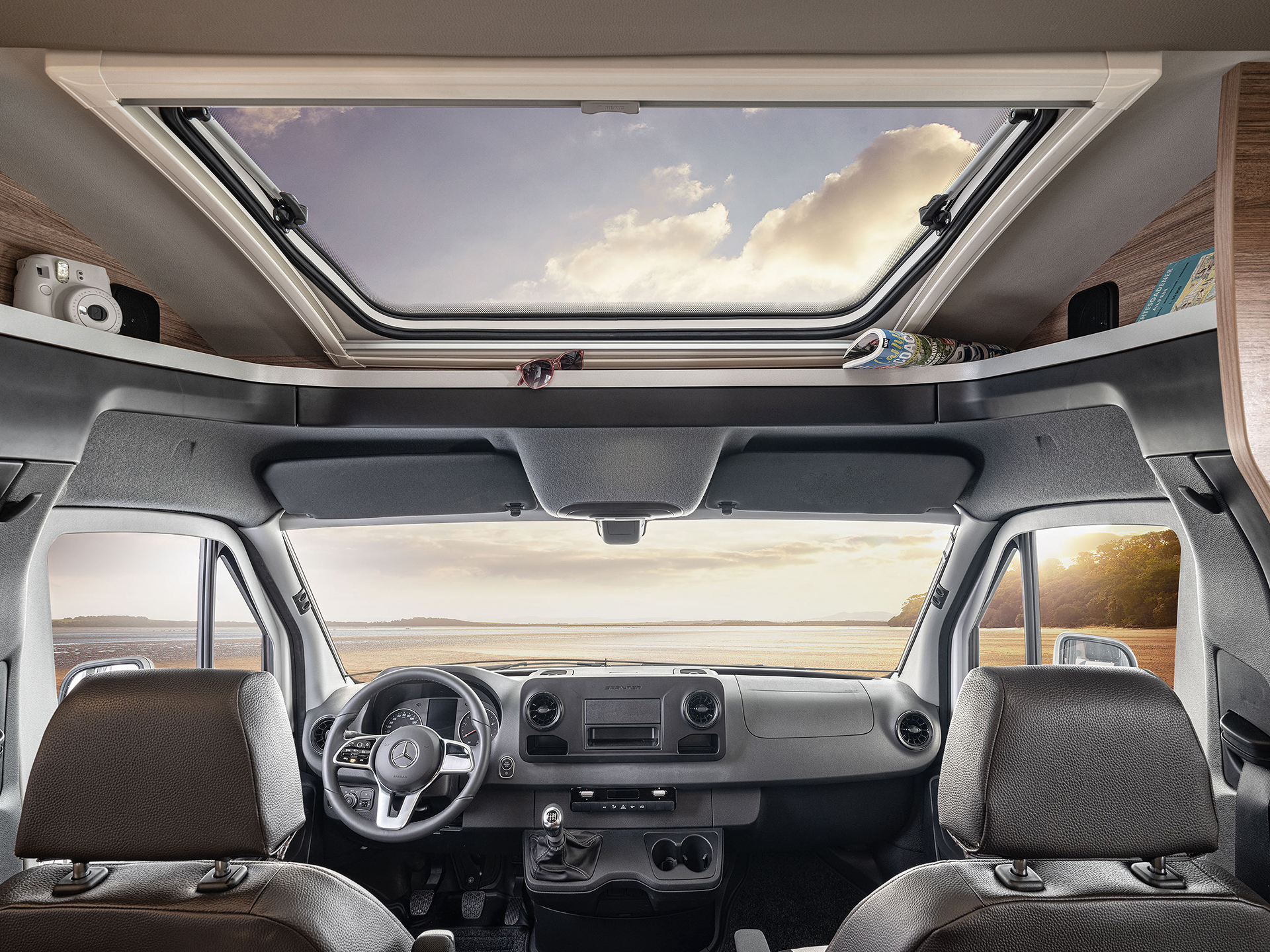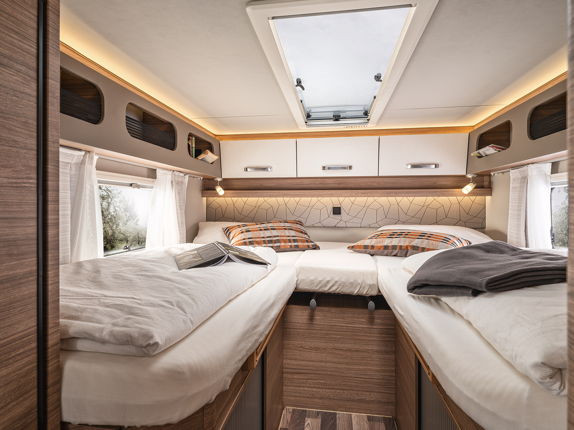 - Částečně integrovaný obytný vůz s rozsáhlou výbavou