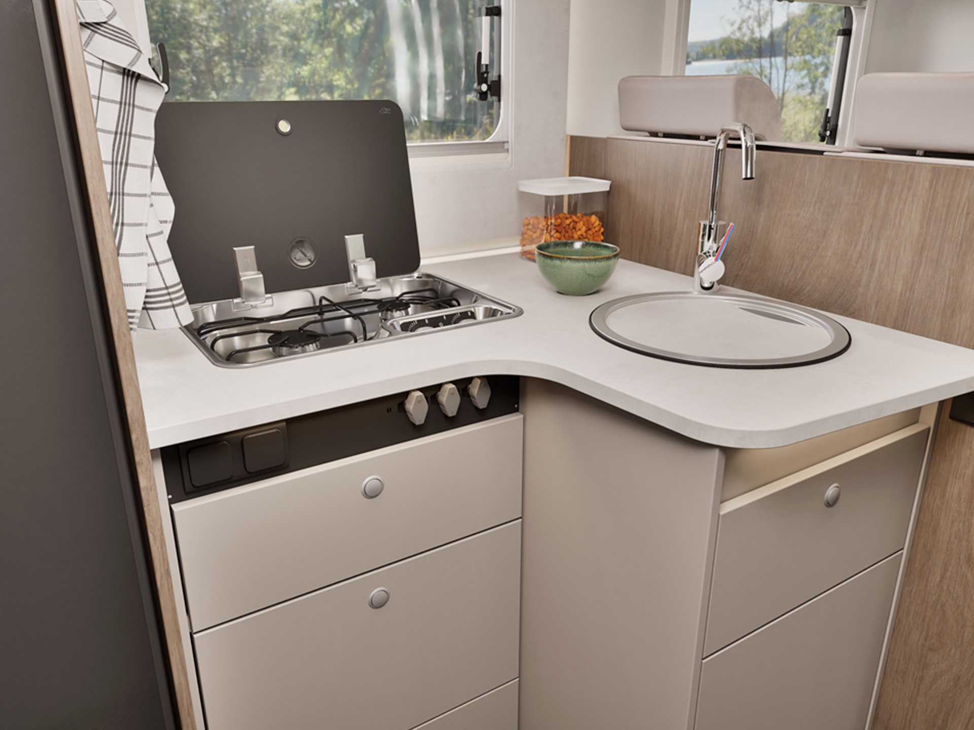 Carado T328 nabízí mnoho prostoru pro individuální přizpůsobení. Carado nabízí celkem sedm balíčků, včetně balíčku PRO+. Kromě toho máte v mnoha oblastech možnost dokoupit jednotlivé doplňky – od látkových potahů přes palubní techniku až po vybavení interiéru a základní vozidlo. Díky tomu vzniká široká škála kombinací, díky nimž si můžete model T328 přizpůsobit přesně podle svých představ. Rádi vám představíme různé možnosti!