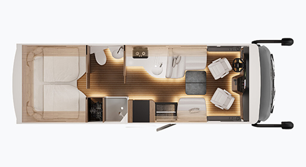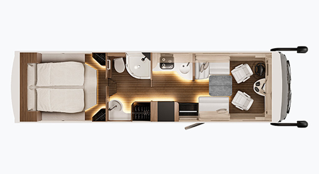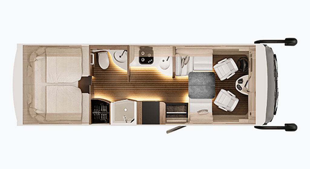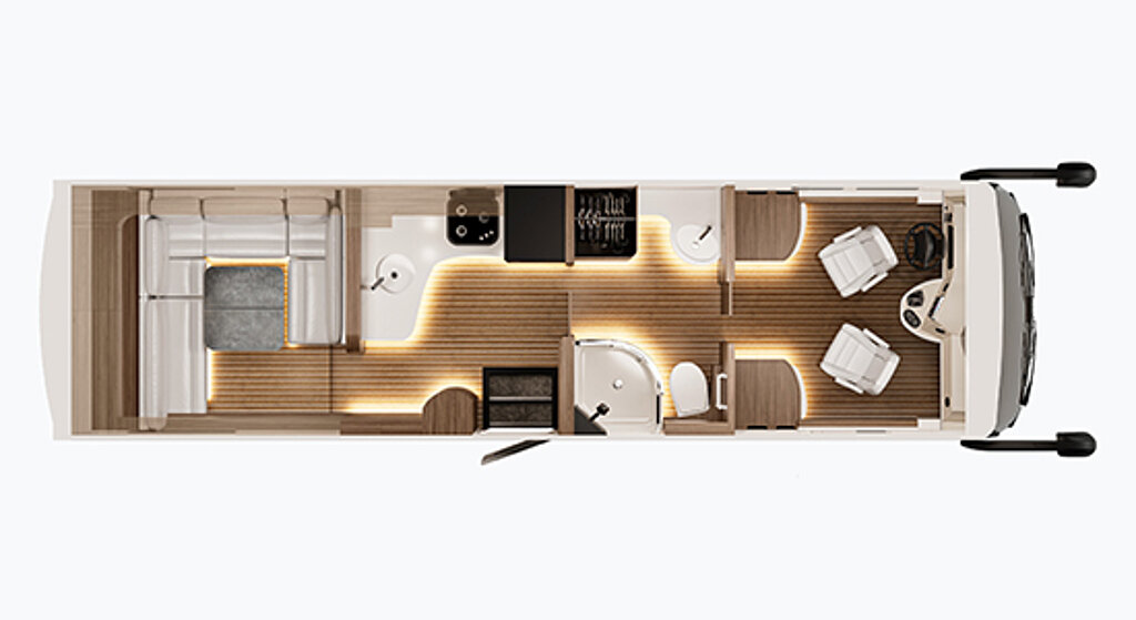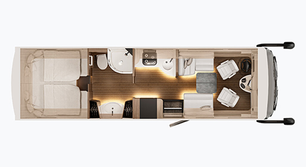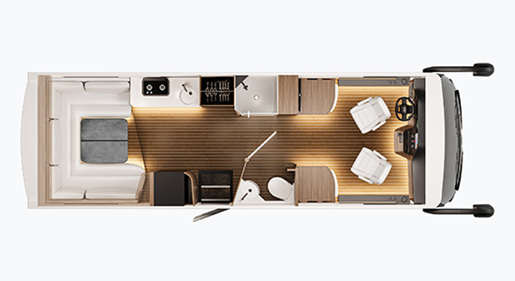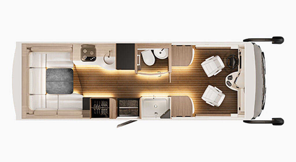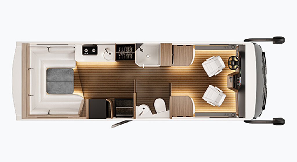 Insgesamt verfügt der Carver über sieben verschiedene Grundrisse. Darüber hinaus gibt es noch fünf zusätzliche Grundrisse in der Select Series. Je nachdem unterscheiden sie sich in Faktoren wie der Fahrzeuglänge, aber auch in der konkreten Ausstattung wie beispielsweise der Anordnung der verschiedenen Möbel und Bereiche des Reisemobils.