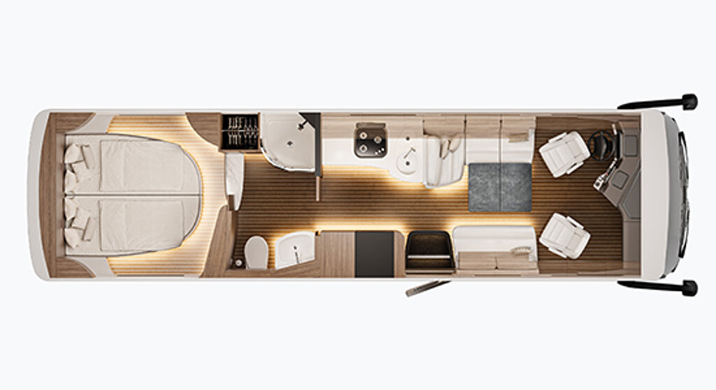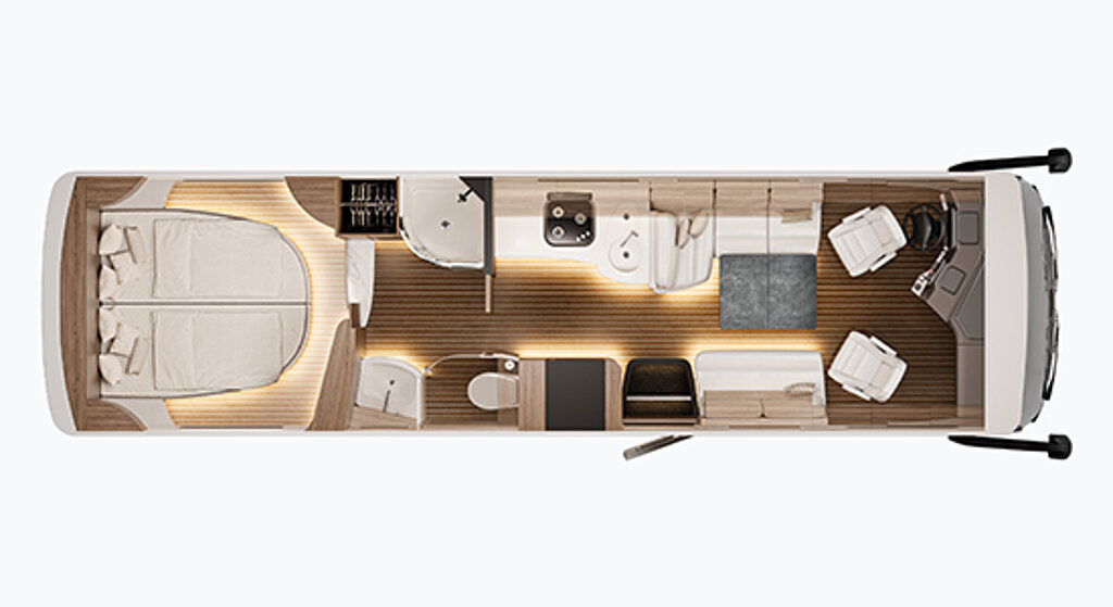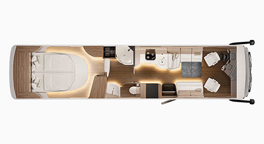 Falls Sie sich vorab bereits ein Bild des unglaublichen Raumangebots machen möchten, nutzen Sie den virtuellen Rundgang. Klicken Sie sich durch die Räume und erfahren Sie, was Luxus-Reisemobil wirklich bedeutet!