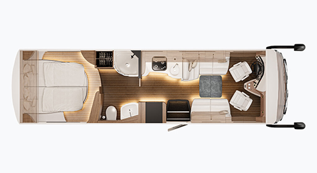 - Pakete umfassen: Design & Interieur, Schlaftechnologie, Multimedia, Elektrik und Wassersystem