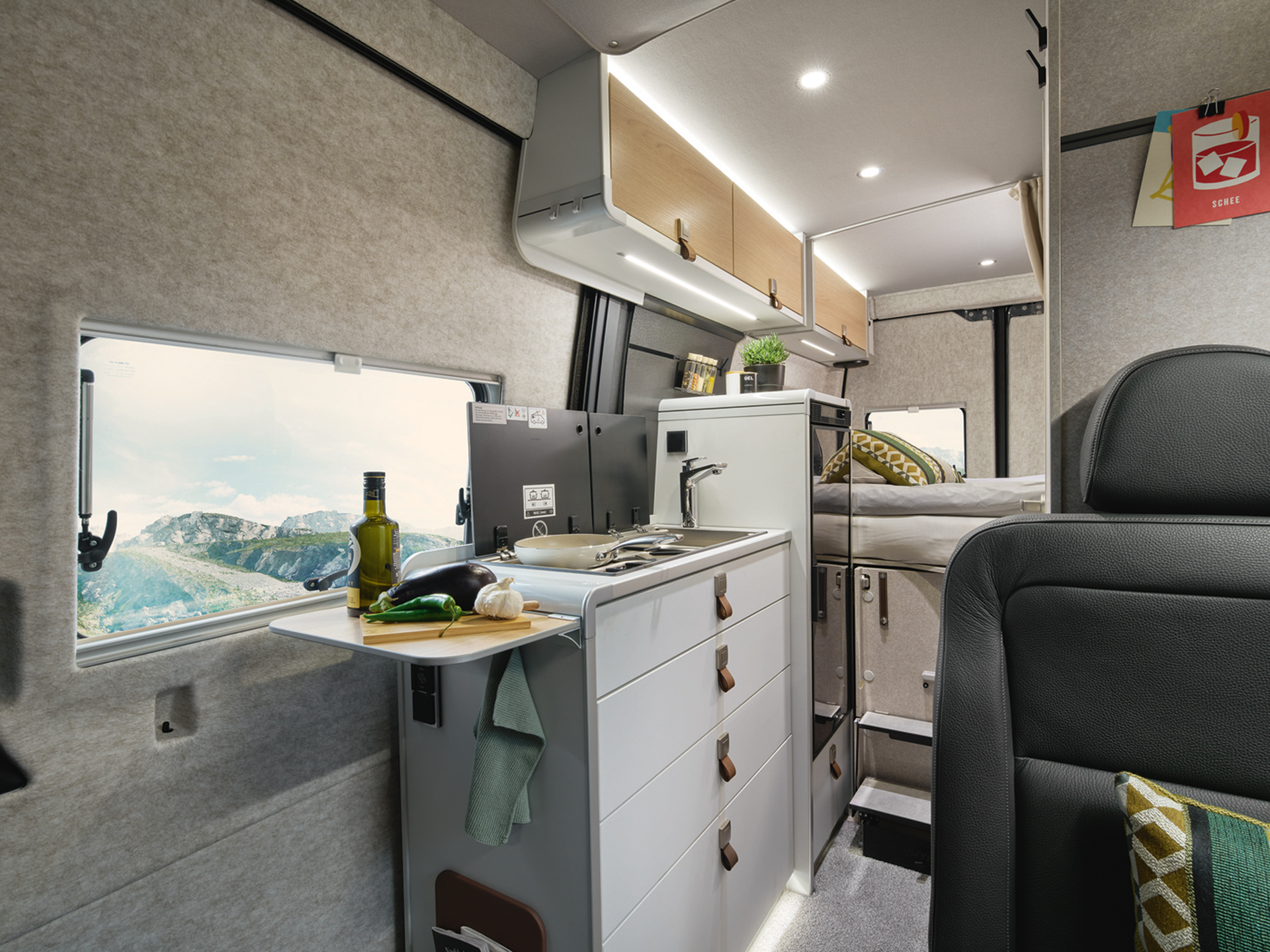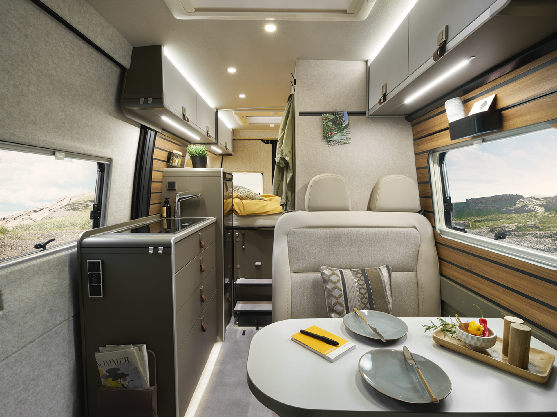 - Bis zu 4 Schlafplätze auf einer Länge von unter 6 m bei einer technisch zugelassenen Gesamtmasse von 3.500 kg möglich
